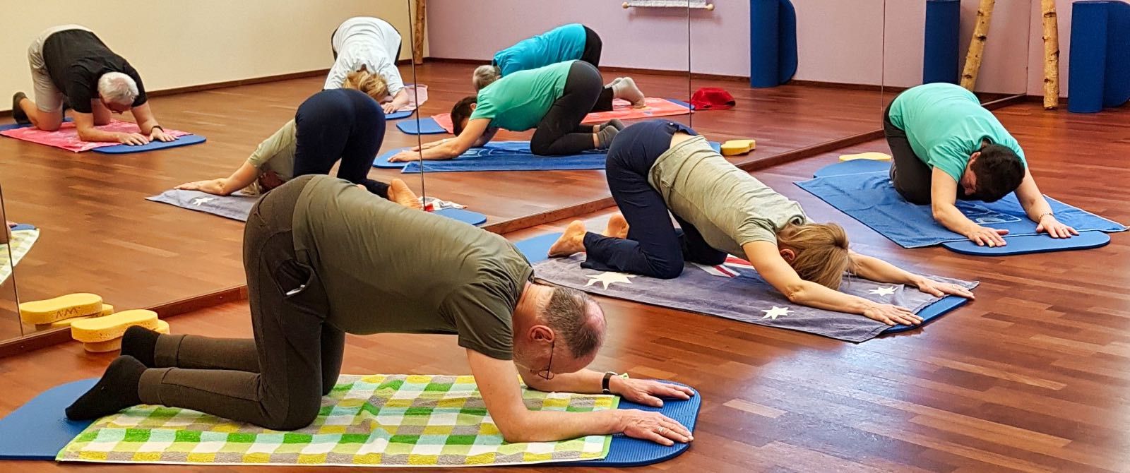 In Gruppen bewegen wir uns auf vielseitige Weise. Wir kräftigen und dehnen dabei die Rücken- Bauch- und Beckenbodenmuskulatur, erweitern unser Körperbewusstsein durch Wahrnehmungsübungen, verbessern die Körperhaltung, das Gleichgewicht und die Koordination. Als Abwechslung und Unterstützung dienen uns verschiedene Gymnastikgeräte. Wir lernen rückenschonende Verhaltensweisen im Alltag kennen und nehmen uns für Entspannungs- und Atemübungen Zeit. In den Stunden werden anatomische und funktionelle Grundsätze vermittelt.